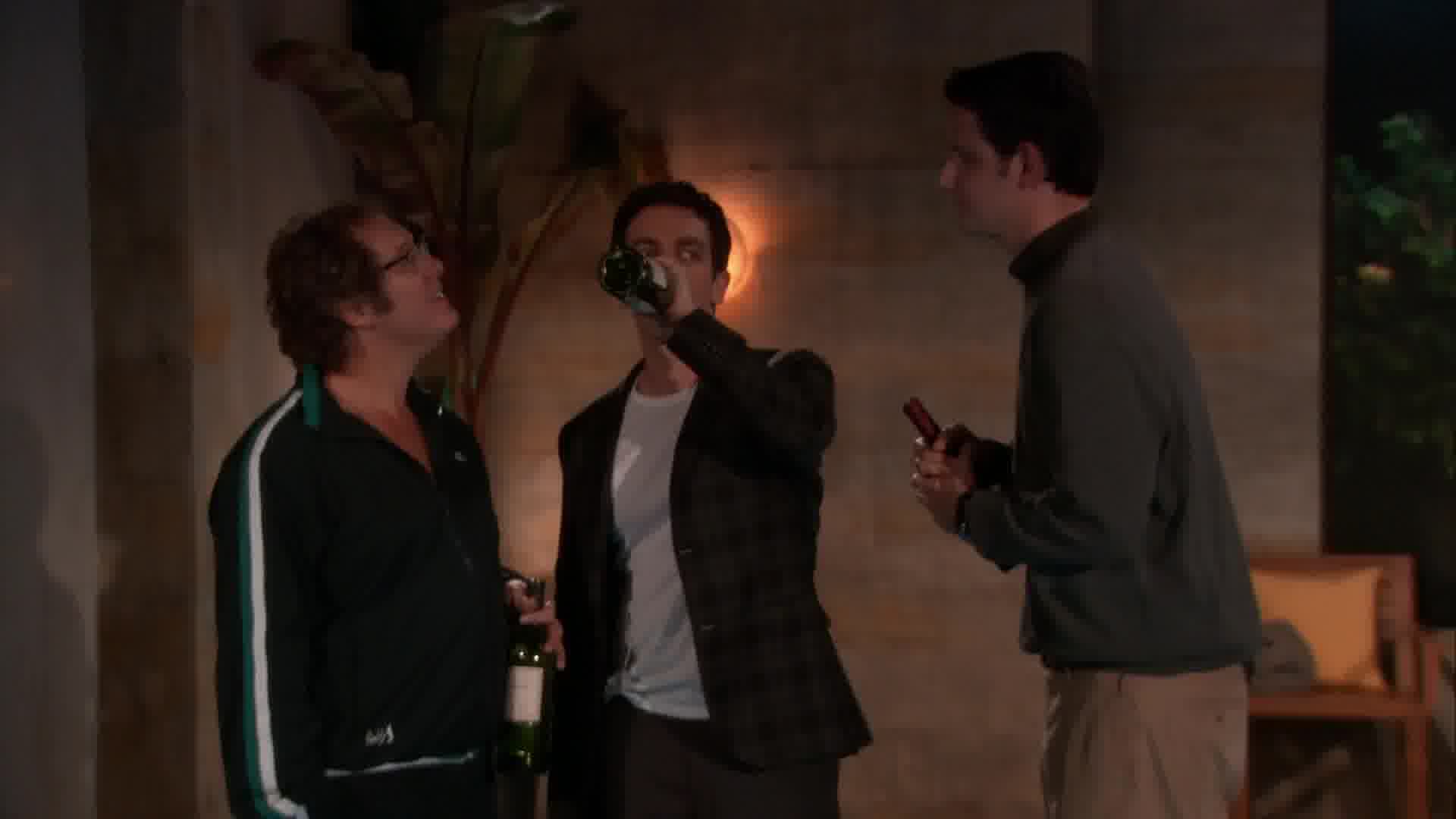 Robert:Gentlemen, bear witness. While I've been mourning the nights that never were, one of them has been unfolding here before me. This is no get-together. This is a party. [Robert strips, jumps in pool, Gabe and Ryan join him]